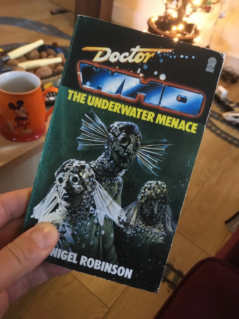 The Underwater Menace – one of a batch of Target novelisations I was bought for Christmas last year – was not one of these, because The Underwater Menace was a Doctor Who book owned by my school library. The only Doctor Who book owned by my school library. So although it might not have been my first Doctor Who book, it was one of the first Doctor Who books I read in the comfort of my own home (the first or second, in fact; the other was Doctor Who In An Exciting Adventure With The Daleks, the grey hardback of which my local library held – oh, those line drawings! The description of the endless TARDIS corridors! The glass Dalek!).